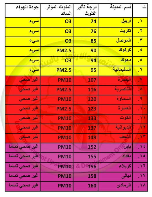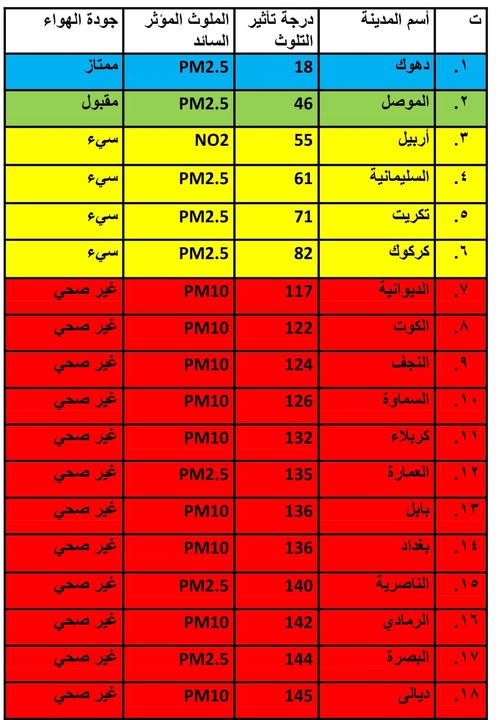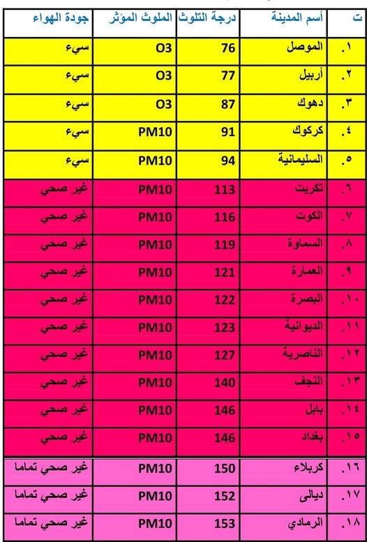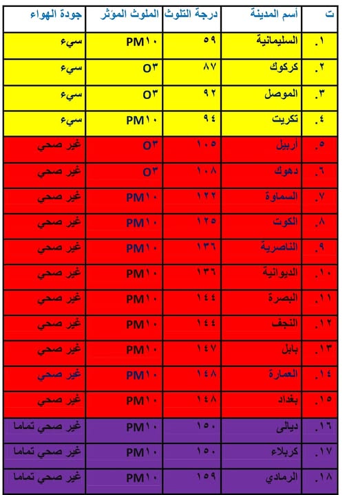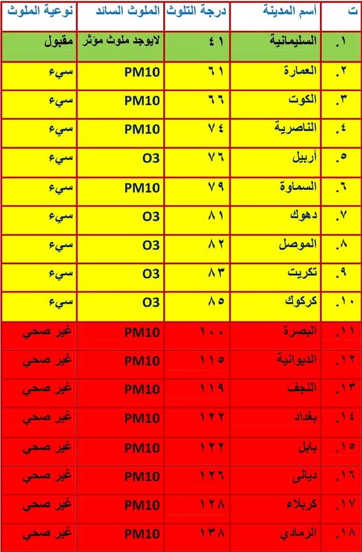 أرتفعت حدة التلوث في معظم محافظات العراق