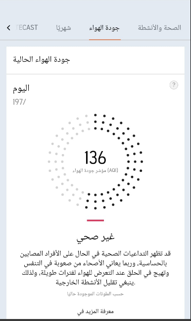 حصول أنخفاضات طفيفة في معدلات تلوث الهواء لهذا اليوم